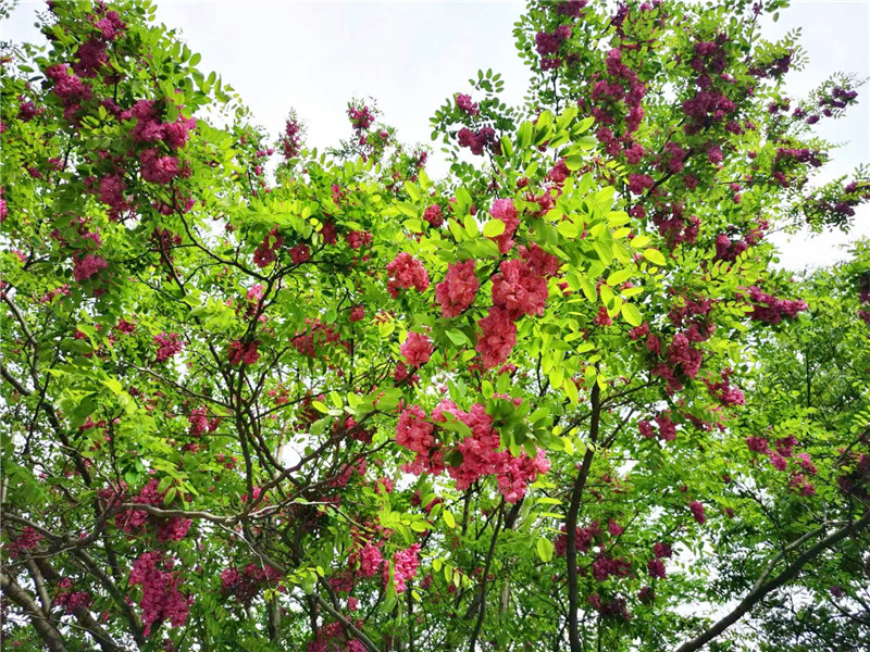 “槐林五月漾瓊花,郁郁芬芳醉萬家。”眼下,在周口濱河公園,紅色的槐花怒放,芳香四溢,惹人心醉。陽光下,一串串、一簇簇、一樹樹槐花隨風(fēng)搖曳,美不勝收。周口日報·周道客戶端記者 普淑娟 攝