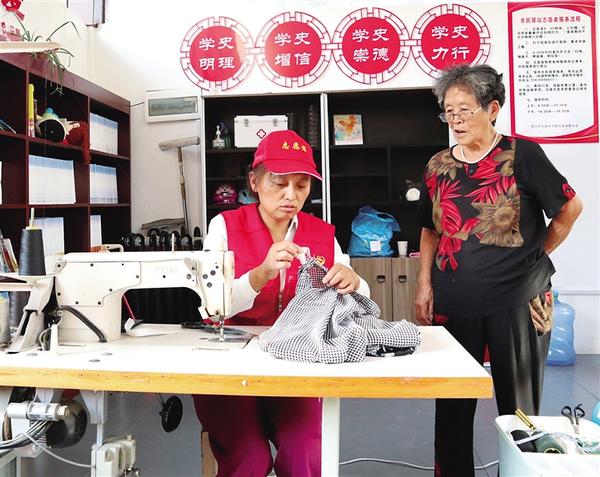 “家里的舊衣服千萬別扔,我給大家修修還能穿。雖然現在咱們的日子越來越好,但也應該注意節省……”8月3日,在中心城區文明路道德書屋,志愿者趙秋霞一邊忙著為市民縫補衣物,一邊和市民聊天。