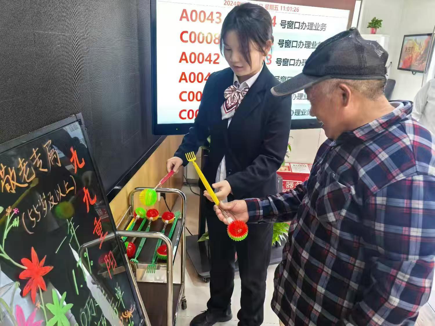 該行深入貫徹落實(shí)“工行驛站”服務(wù)民生,做好“五篇大文章”,以“引進(jìn)來(lái)+走出去”和“線上+線下”聯(lián)動(dòng)方式,依托網(wǎng)點(diǎn)資源稟賦,圍繞年長(zhǎng)進(jìn)店客群,開(kāi)展“尊老敬老”活動(dòng),邀請(qǐng)他們體驗(yàn)工行驛站愛(ài)心窗口、自助機(jī)具大字版和適老金融自助終端等助老服務(wù)設(shè)施;向老年客戶“一對(duì)一”宣傳普及國(guó)家養(yǎng)老保障政策,介紹工商銀行適老金融產(chǎn)品及服務(wù);不定期聯(lián)合養(yǎng)老、醫(yī)療等機(jī)構(gòu),向“銀發(fā)”客群提供健康咨詢服務(wù);為行動(dòng)不便的年邁老人上門辦理金融業(yè)務(wù),加強(qiáng)對(duì)老年客群的關(guān)心關(guān)愛(ài),讓老年客戶親身體驗(yàn)到工商銀行的暖心服務(wù)。