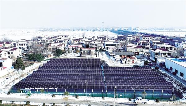雪后的鄲城縣汲冢鎮謝寨村,連片的光伏板在暖陽下熠熠生輝。