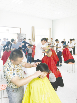 5月4日,團縣委組織29家理發店50名理發師,在縣老干部活動中心開展了慶“五四”免費為環衛工人義剪獻愛心活動。200多名環衛工人在理發師的精心打理下發型煥然一新,精神抖擻。(團軒 攝)