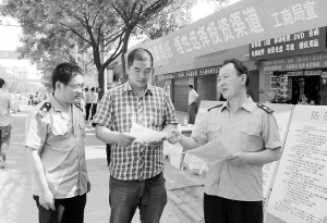 5月16日上午,扶溝縣工商人員向過往市民講解非法集資的危害。當日,該縣處置非法集資領導組在縣城桐丘路舉辦打擊非法集資現場宣傳教育活動,各參加單位通過發放資料、現場咨詢等形式告知廣大市民拒絕參與非法集資。盧付昌 攝