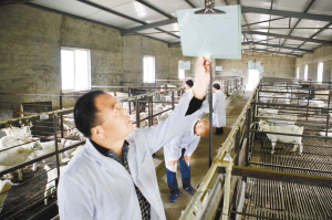 孫振偉原是當(dāng)?shù)刂那嗄昶髽I(yè)家,2008年初被西關(guān)村居民高票選舉為村黨支部書記,憑著對(duì)家鄉(xiāng)的強(qiáng)烈責(zé)任感和保護(hù)槐山羊特色品種的使命感,孫振偉帶領(lǐng)西關(guān)村立足本村作為槐山羊傳統(tǒng)養(yǎng)殖區(qū)的優(yōu)勢(shì),于2010年成立沈丘縣槐山羊養(yǎng)殖發(fā)展有限公司,在省畜牧展交易會(huì)上,與鄭州鄭源公司合作,共同簽約了投資6000萬(wàn)元建設(shè)槐山羊原種保護(hù)、繁育、深加工項(xiàng)目。同時(shí)與華中農(nóng)大建立技術(shù)合作關(guān)系,投資800萬(wàn)元建成“槐山羊原種保護(hù)和繁育中心”,規(guī)劃設(shè)計(jì)了化驗(yàn)室、消毒室、提純復(fù)壯室、品種基因室等配套規(guī)范設(shè)施,不僅為國(guó)家級(jí)優(yōu)良品種槐山羊的保種提純工作提供了科研平臺(tái)和寶貴數(shù)據(jù)庫(kù),“槐山羊提純復(fù)壯良種繁育技術(shù)研究與應(yīng)用”成果還獲得2013年度周口市科技進(jìn)步一等獎(jiǎng)。經(jīng)過(guò)提純復(fù)壯,目前中心存欄特征明顯的槐山羊母羊860只、種公羊36只,在此基礎(chǔ)上,計(jì)劃建成占地100畝的槐山羊養(yǎng)殖小區(qū),槐山羊板皮、肉制品等深加工項(xiàng)目都已經(jīng)開始實(shí)施。 “這些是經(jīng)過(guò)第五輪提純復(fù)壯繁育的槐山羊,目前可以說(shuō)是最純種的槐山羊了。”孫振偉指著一批剛出生的小羊向我們介紹。