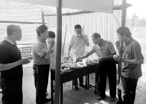 7:00:趙長領的愛人照例給干部們送來了饅頭、涼拌黃瓜、蒜泥茄子、幾根蔥、兩朵大蒜,這就是鎮村干部們的早飯。