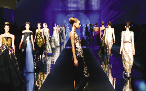 7月13日,在意大利米蘭世博會南京周閉幕時裝秀上,模特展示中國設計師勞倫斯·許的作品。當日,中國高級定制設計師勞倫斯·許的云錦時裝秀在意大利米蘭世博會南京周上演,展示了37套由云錦面料制成的高級定制禮服。