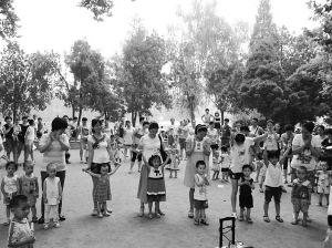 日前,周口東方愛嬰早教中心開展戶外活動,培養孩子從小學會“分享”和社會交往。家長們帶著食物,讓孩子和其他小朋友分食。圖為家長和寶寶在表演節目。